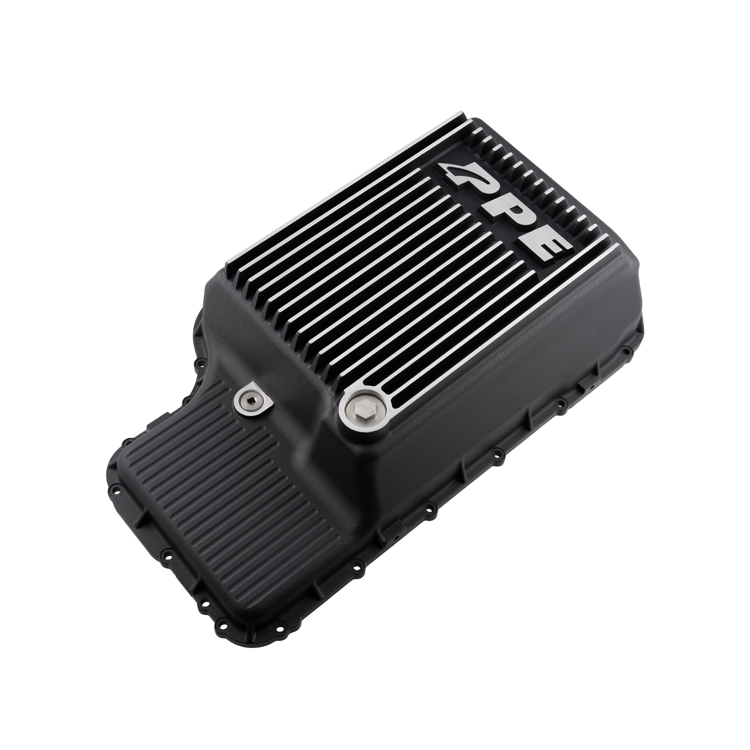 Elevate Your Ford Super Duty with the PPE Heavy-Duty Cast Aluminum Deep Transmission Pan. Cast from high-grade A356.0-T6 aluminum alloy, the PPE Transmission Pan offers superior resistance to impact and warping compared to the factory plastic pan. Its robust construction ensures long-lasting protection and performance. The deep external cooling fins maximize the heat-wicking surface area, effectively dissipating heat to keep your transmission cool under pressure.