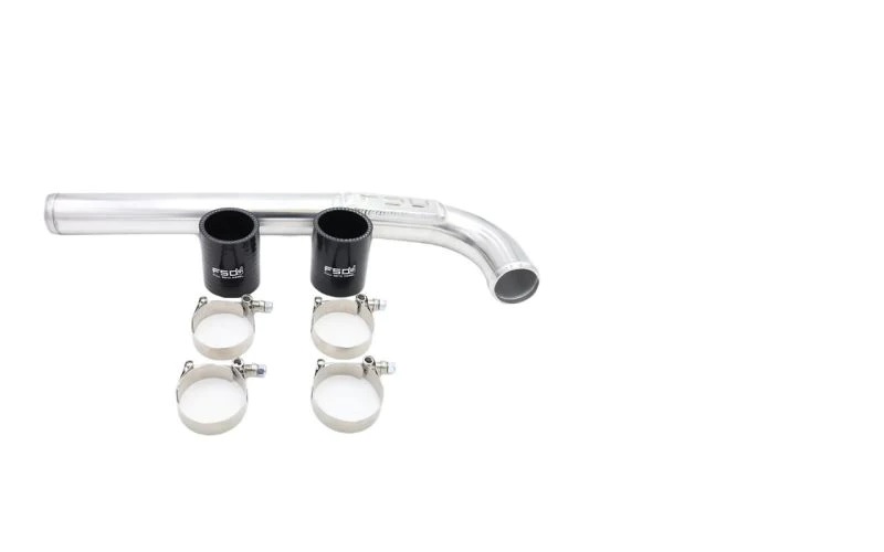 Replace your upper radiator hose in your 6.7L Cummins all while adding some flash under the hood with thie Fabricated Upper Radiator Pipe Kit from Full Send Diesel. This coolant pipe is constructed of lightweight aluminum and comes complete with high temp 5-ply boots and stainless steel clamps.