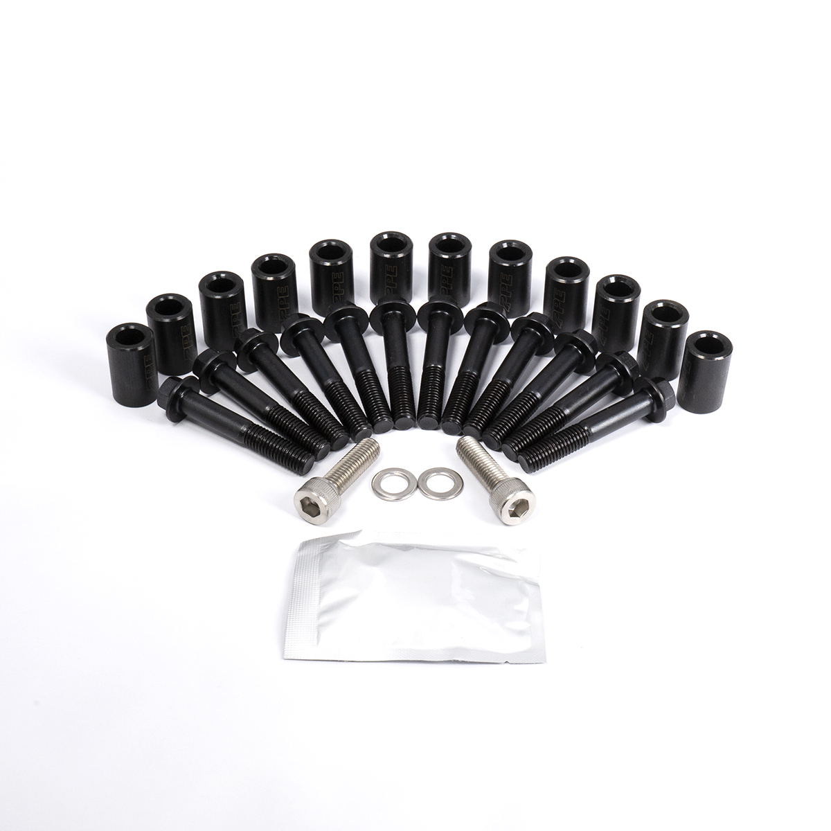 Each PPE Manifold Bolt is centerless ground and rolled with extreme precision, reducing stress concentrations, and increasing durability. The use of Spacers mitigates the heat expansion on the Bolts and prevents permanent yields. All fasteners have a black oxide finish.