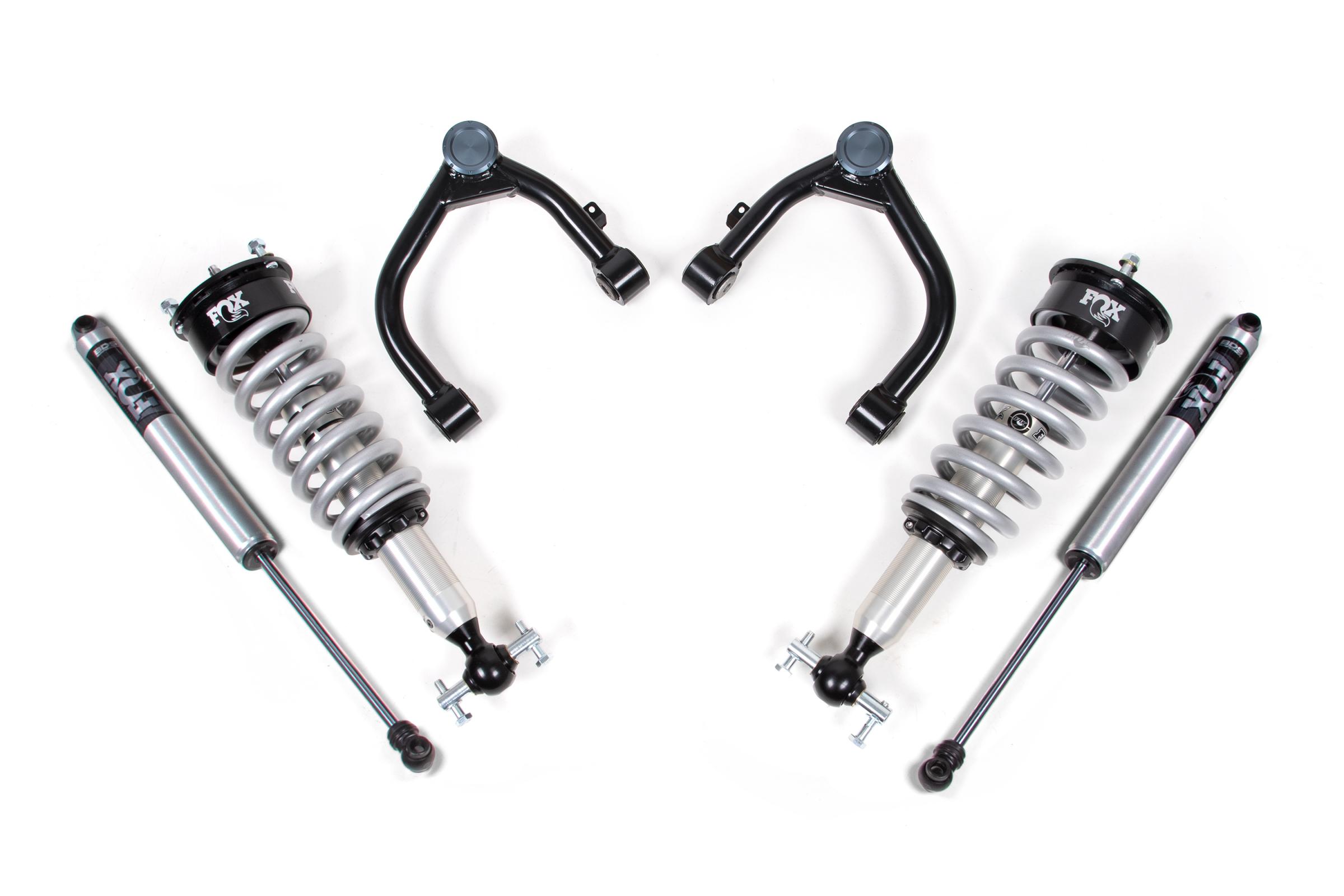 Level out your Chevy Silverado and GMC Sierra 1500 truck and improve the ride with this 2-inch leveling kit featuring FOX 2.0 coil-over shocks from BDS Suspension. Designed to improve stance, performance, and capability, this kit includes everything necessary to set your truck up right with clearance for up to 33 inch Tires.