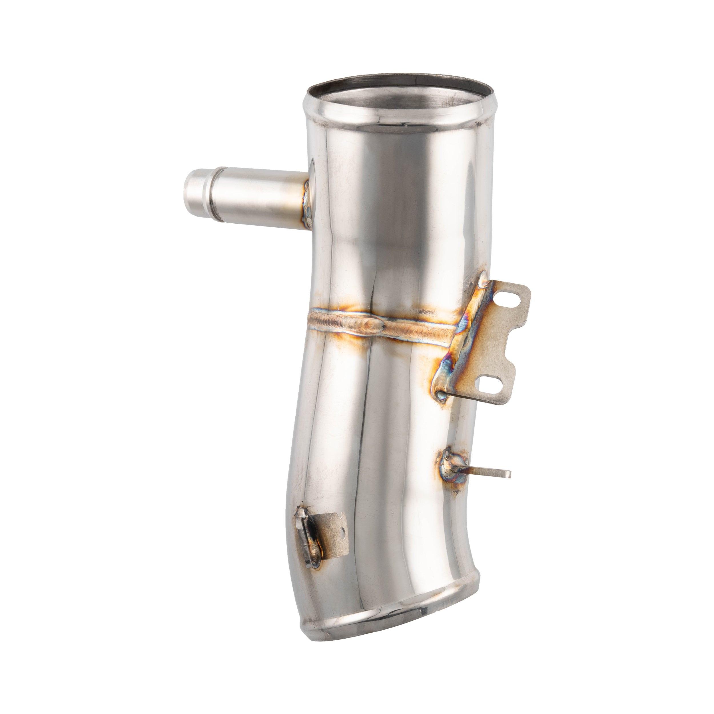 This ensures higher flow efficiency and reduces frictional losses. Additionally, the factory plastic two-chamber turbo resonator has been removed, reducing air turbulence and weight, while enhancing turbo sound.