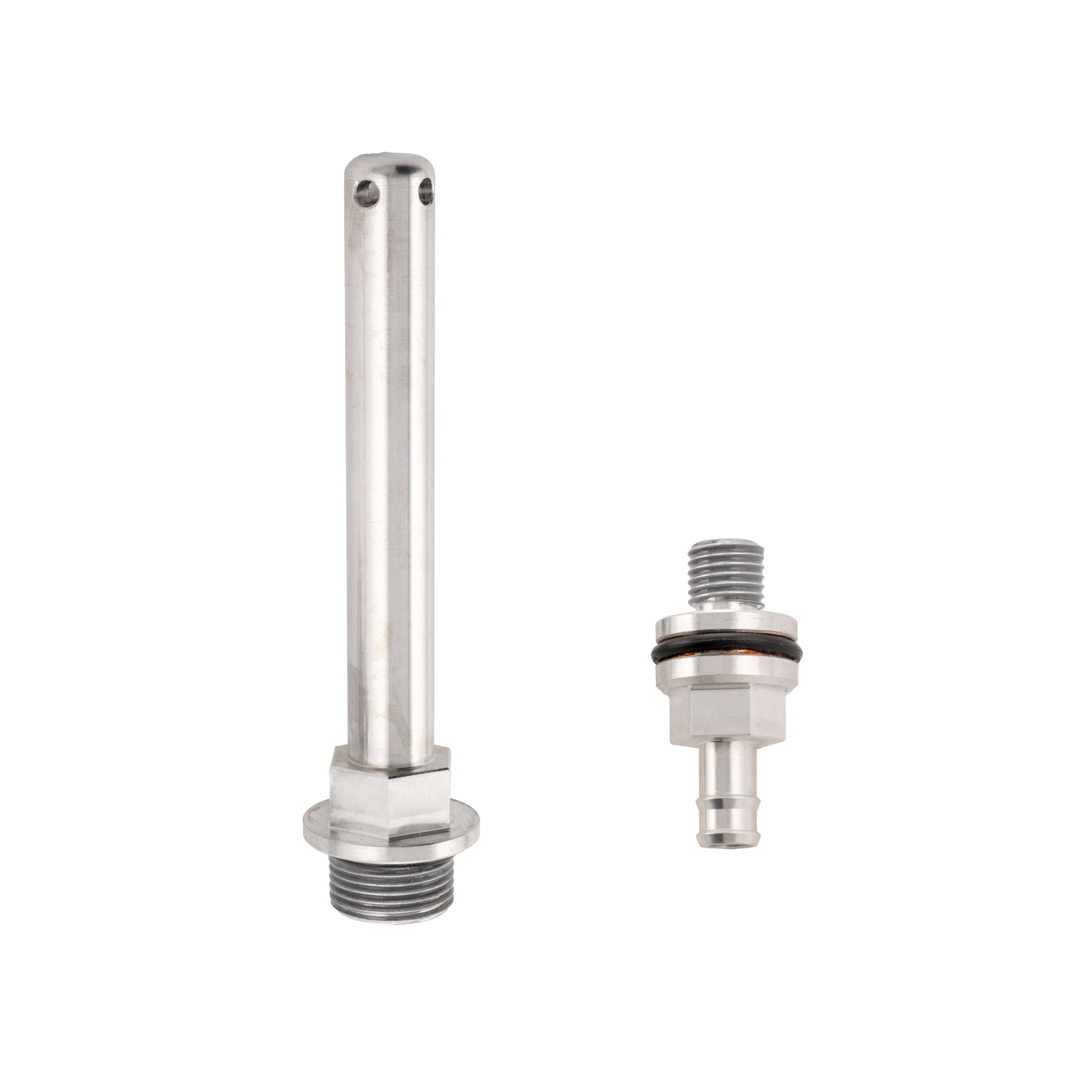 The PPE Transmission Pan includes a fluid level check standpipe and a fluid fill adapter. With just a fluid dispenser and a 3/8 inch hose, transmission fluid services can be easily managed. The billet stainless steel drain plug is equipped with a powerful neodymium magnet that captures ferrous particles, providing additional protection for your transmission.