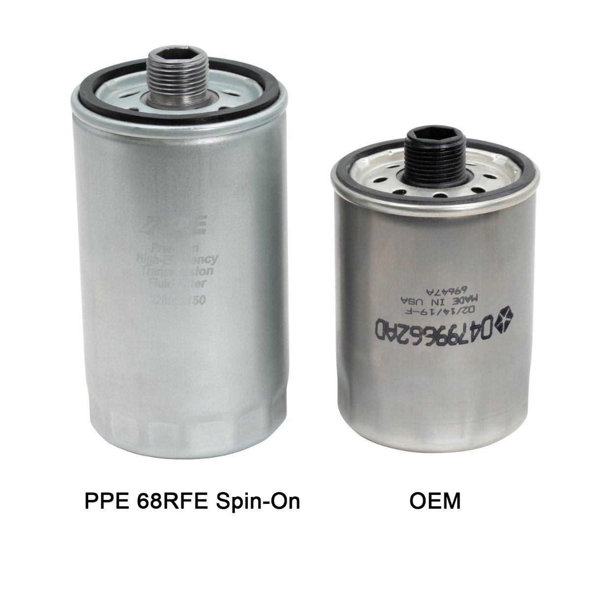 Requires PPE 68RFE Transmission Pan Premium High-Efficiency Transmission Fluid Filter PPE has designed a superior filter for the 68RFE transmission. This filter upgrade features an extended filter cup that houses 57 percent larger specially engineered 10-micron filtration media.