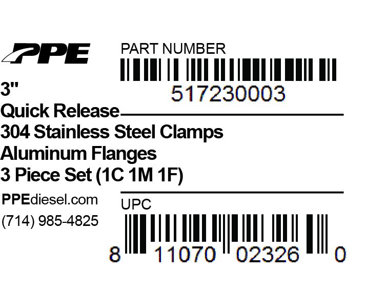 3.0 Inch QR Aluminum V-Band 3 Pc Set 1C 1M 1F PPE Diesel