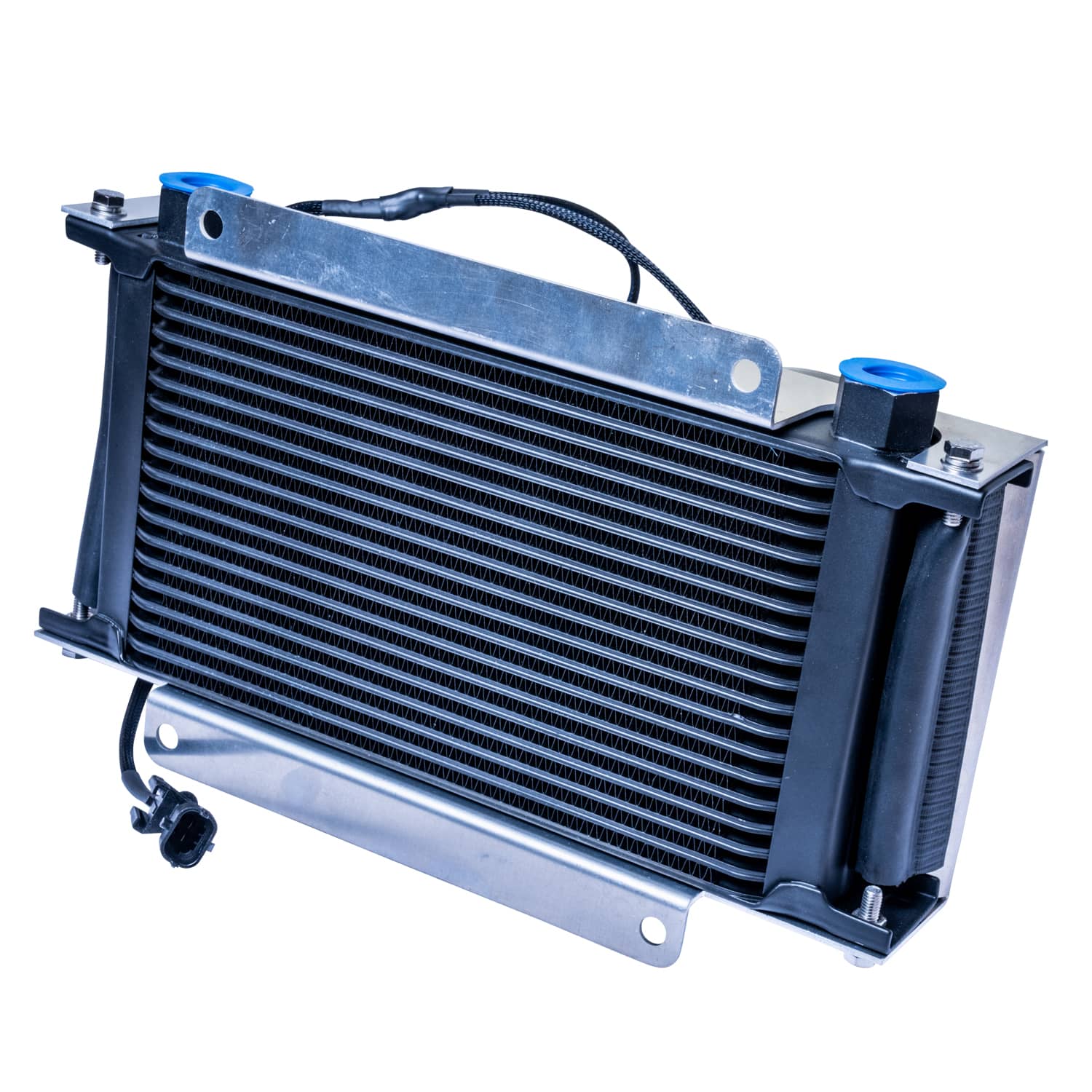 - 310-903-2000 - 19 Row Cooler with Double Fans: Cooler with fans measuring 7.875 Inch x 13 Inch x 5 Inch. Includes 2 6ft -8AN (1/2 Inch) nylon stainless steel braided hoses and an assortment of -8AN (1/2 Inch) fittings.
