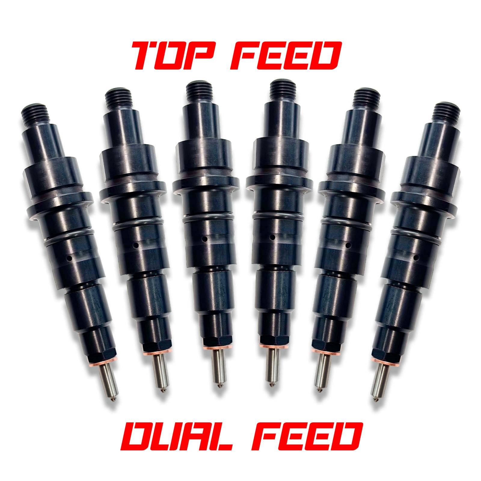 Cummins 24 Valve Injector Set: Custom built Top Feed/ Dual Feed injector set. Our top feed injectors come with internal body modifications with an added feed port for maximum fuel delivery as well as custom nozzles to match the user's power goals as well as intended use.