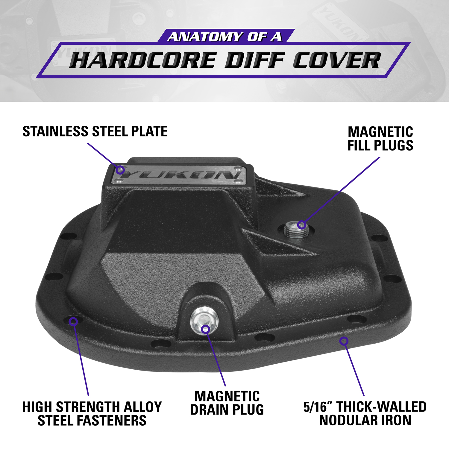 Yukon Hardcore Diff Covers feature a durable powder coat finish and high strength steel fasteners for easy bolt-on installation. Its no secret that the underside of your rig can take a beating.