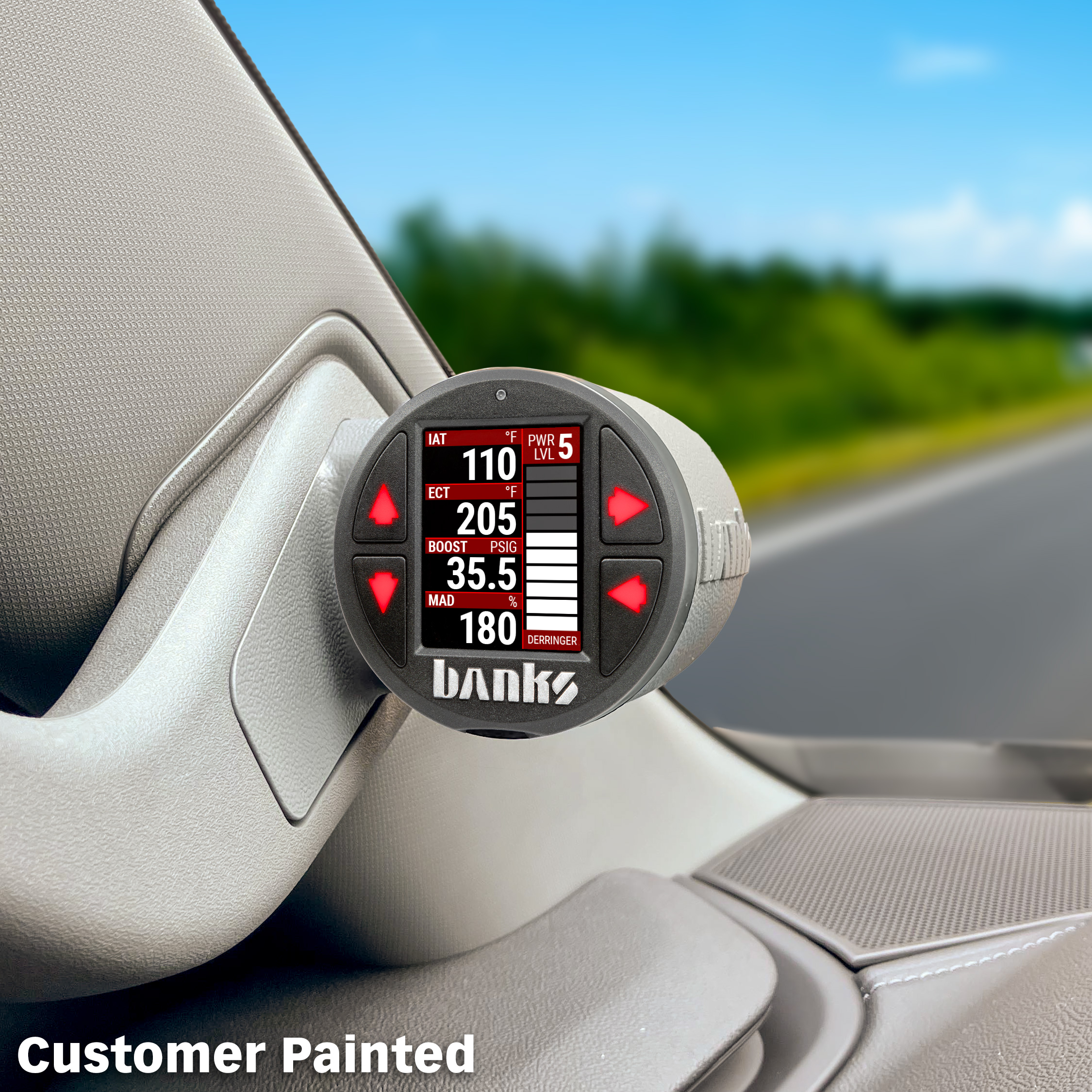 Vehicle-specific grab handle mount designed to work with the low profile nature of the iDash. Ergonomically designed with an optimized viewing angle that is closer to the driver for enhanced visibility. Stealth Pods hide wiring for a clean install and can be painted to match OEM interior colors.