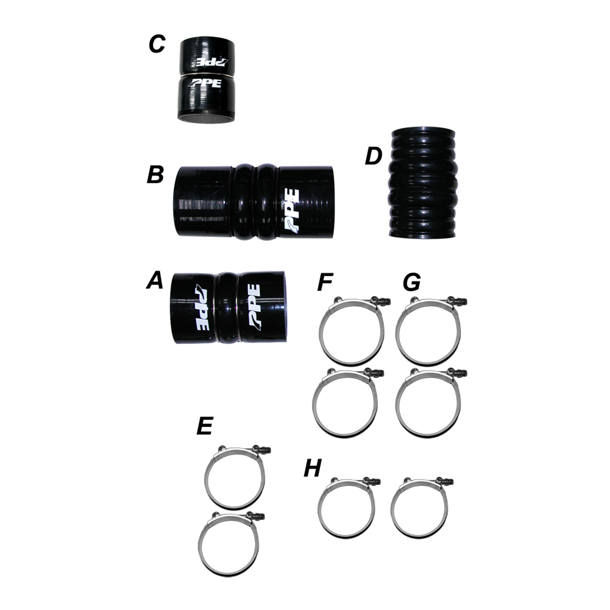 Each PPE Performance Silicone Hose is strengthened with 5 plies of polyester reinforced fibers making them very tough. The Fluorocarbon lining offers better lubricity (slippery and resistant to chemicals) and the silicone rubber construction ensures that they can withstand constant boost pressures from -76 degrees all the way to +437 degrees Fahrenheit. In short, PPE Performance Silicone Hoses will not blow out like a stock hose will.