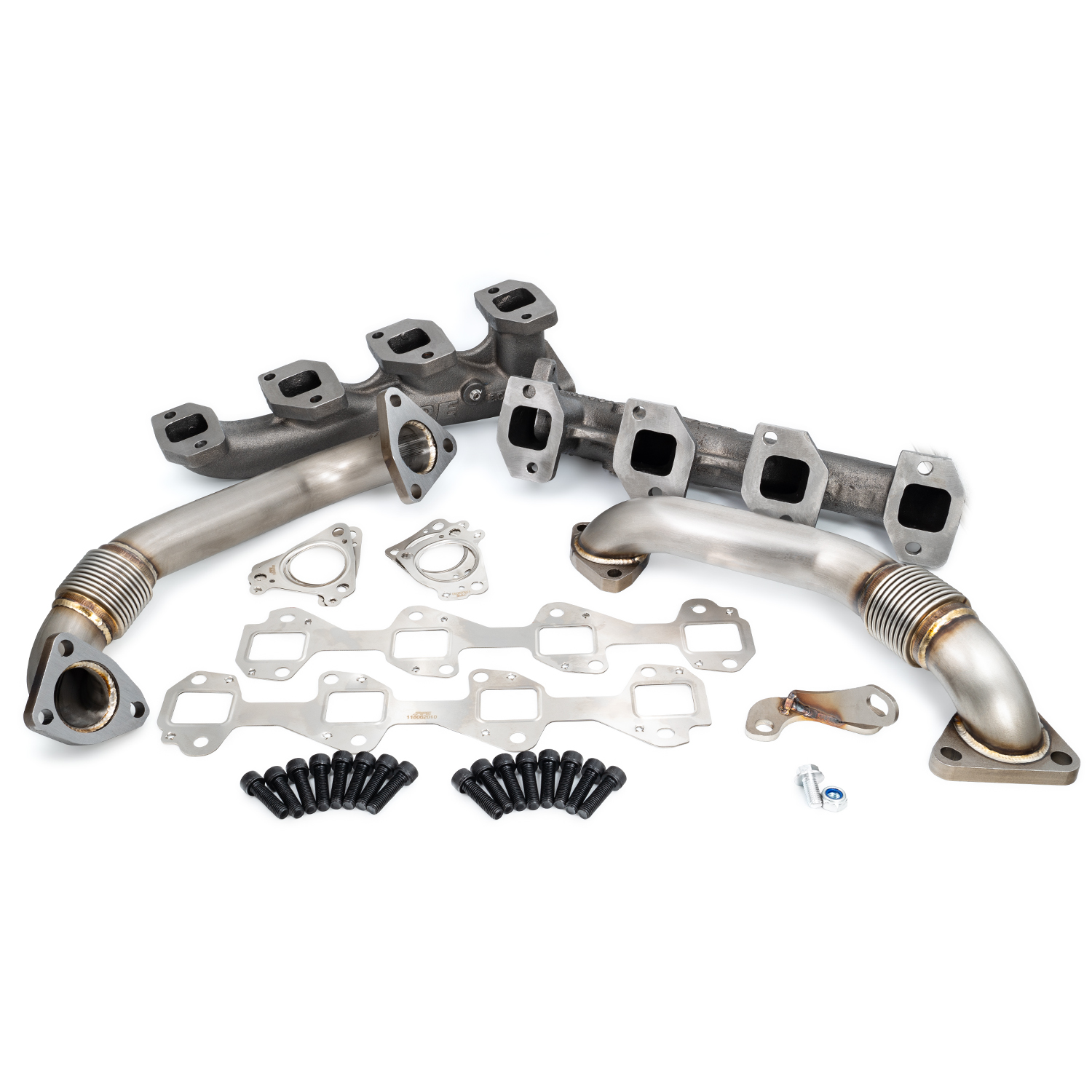 50 States Emissions Legal (E.O. D-701-34). GM 6.6L Duramax High-Flow Exhaust Manifolds and Up-Pipes Kits