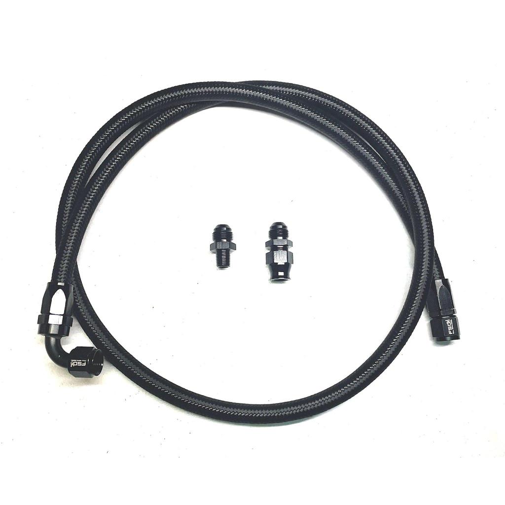 Leaking transmission lines? Look no further then Full Send Diesels AN braided replacement hoses. Our hoses are made from only the best AN fittings and braided hose that the market has to offer. This hose is designed to replace the factory transmission line. As always this kit is backed by our lifetime workmanship warranty.
