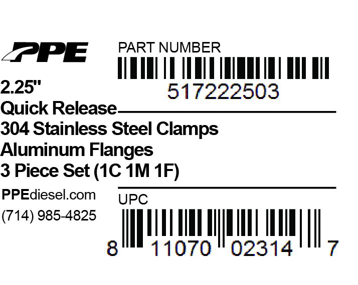 2.25 Inch QR Aluminum V-Band 3 Pc Set 1C 1M 1F PPE Diesel