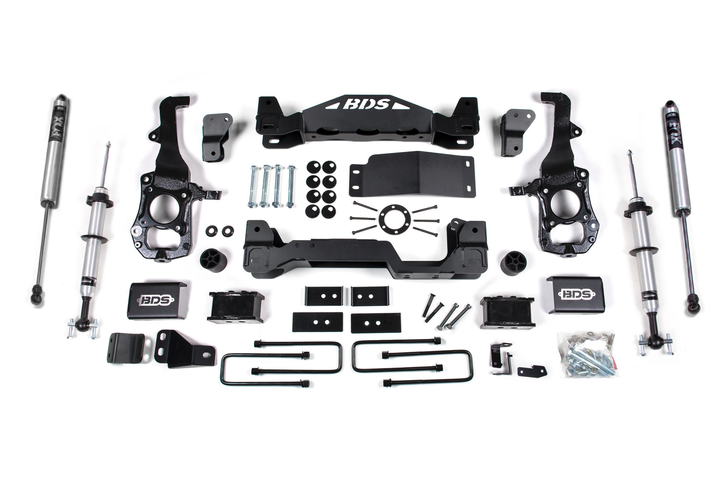 Increase the performance and capability of the 2021-2024 Ford F150 trucks with 4-inch lift kit with FOX 2.0 struts by BDS Suspension. Designed to improve stance the BDS 4 inch lift kit with FOX 2.0 front struts give more capability off-road. This kit includes everything necessary to set your F150 truck up right with clearance for up to 35 inch Tires.