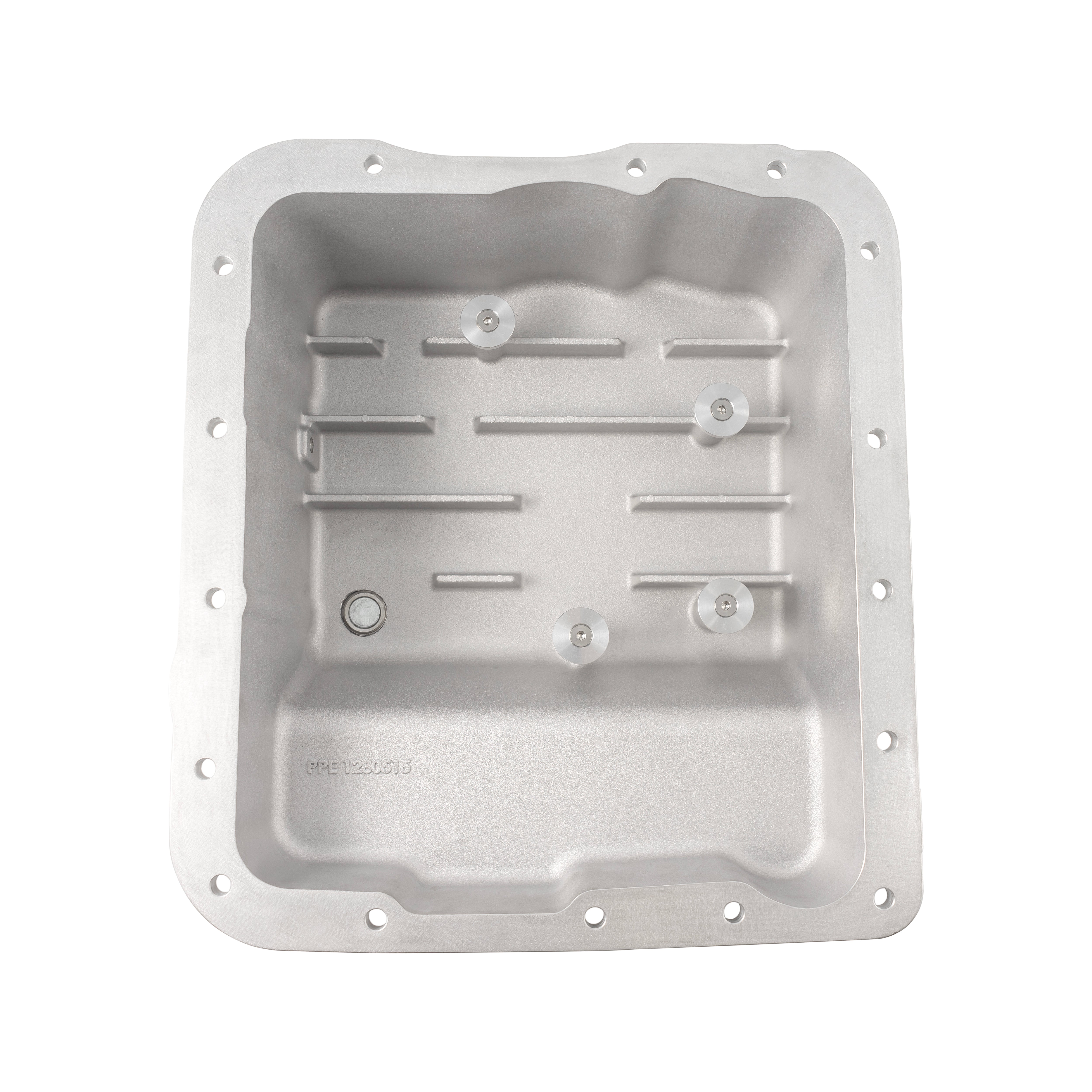 Cast from high-grade A356.0-T6 aluminum alloy, the PPE Transmission Pan offers far superior impact and warping resistance compared to the factory stamped pan. Its robust construction ensures long-lasting protection and performance. The deep external cooling fins maximize the heat-wicking surface area and keep your transmission cool under pressure.