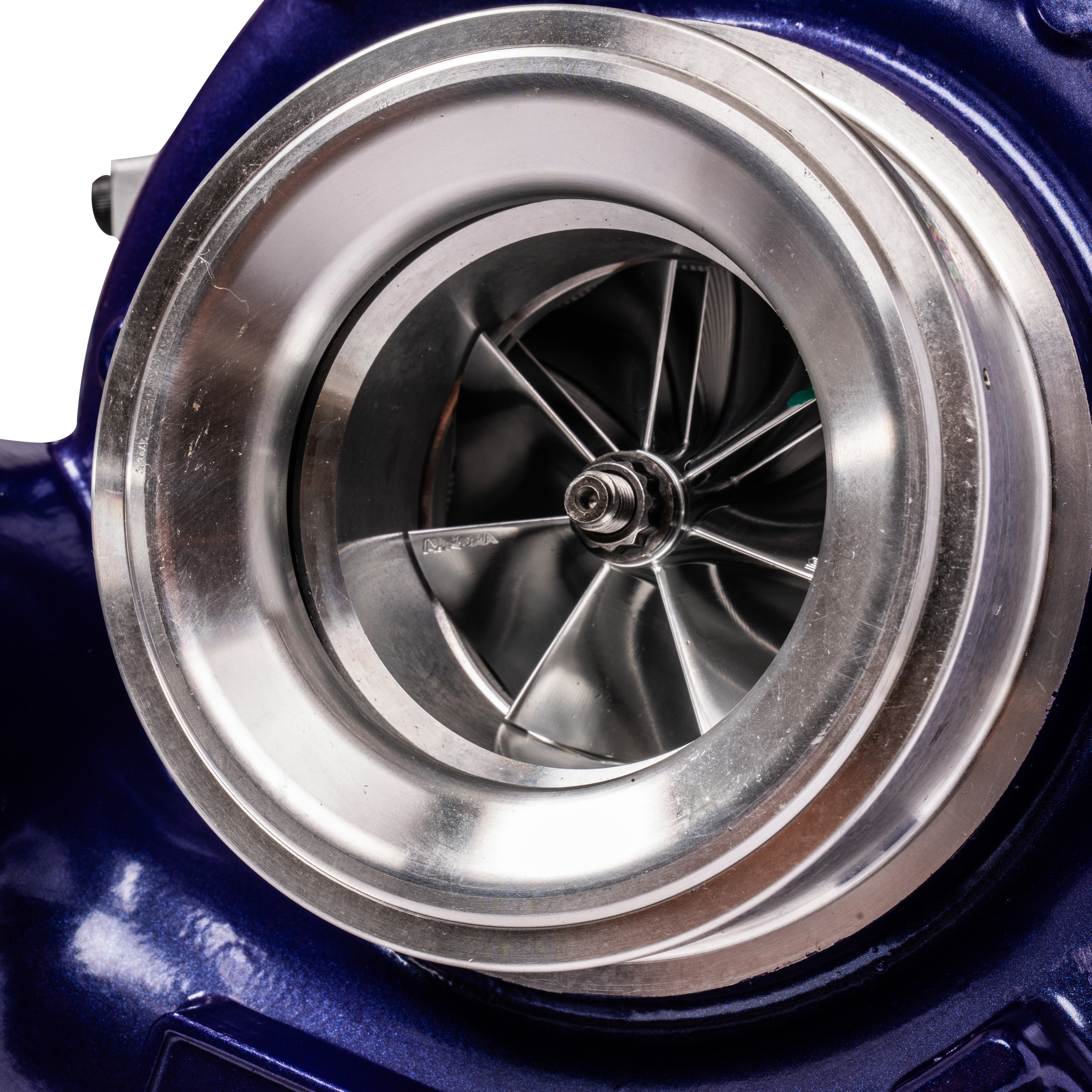 - Compressor wheel: (slim hub, 8x8 splitter for faster spool-up and increased air flow)