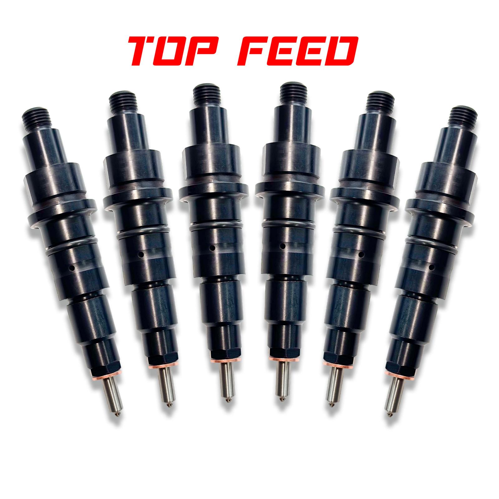 Cummins 24 Valve Injector Set: Custom built TOP FEED injector set. Our top feed injectors come with internal body modifications as well as custom nozzles to match the user's power goals and intended use.