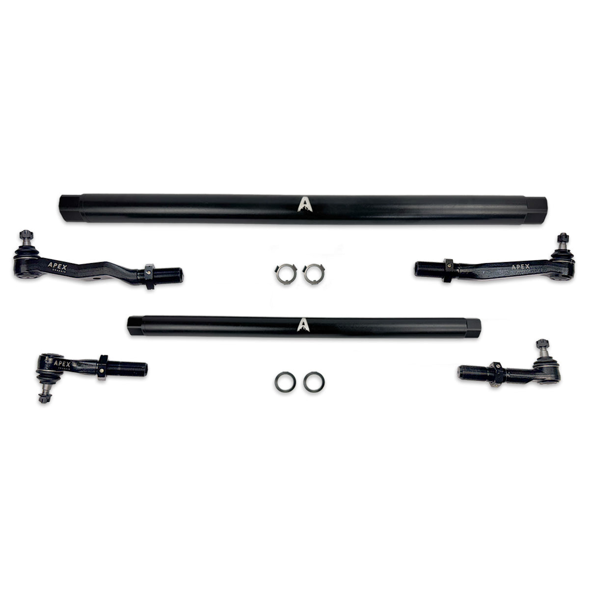 - ProLock Link Connect System (TM): Exclusively from APEX - This patent pending system utilizes a precision keyway cut into the threads of our tie rod and drag link ends, and a pre-bent keyway washer that locks onto the wrench flats of the connecting rod to completely stop any tie rod rotation once the jam nut is set. The jam nut, once torqued to spec, is then locked in place with 3 set-screws inset into the jam nut.