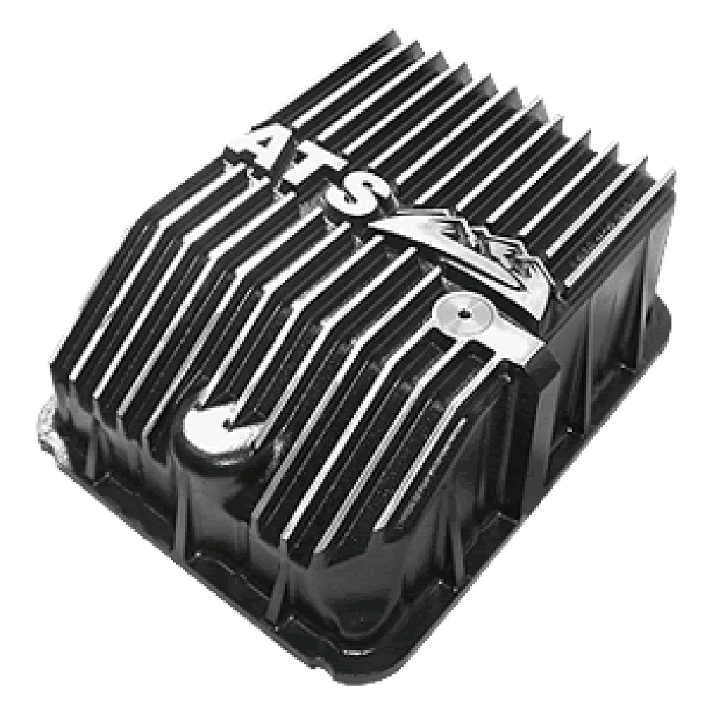 ATS High Capacity Aluminum Transmission Pan, fits E4OD, 4R100, 5R110. Pre-tapped for trans temp sensor, 5 quarts extra fluid capacity, Ford 5R-110W Applications must run the 6.0 5R110 transmission filter.