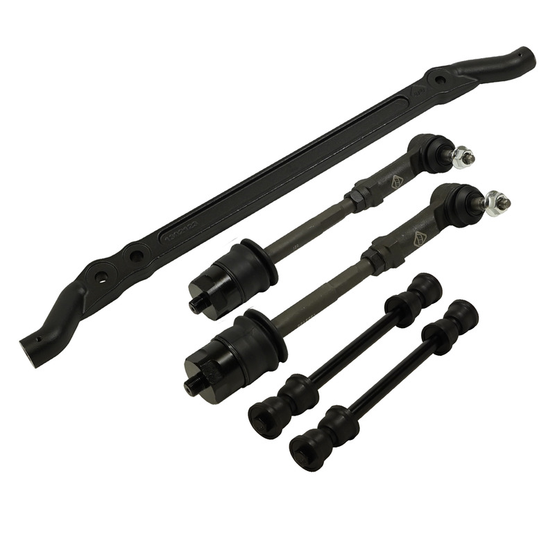 Polyurethane bushings have OEM style shaping for articulation and durability. The entire kit retains factory geometry for accurate steering and will allow for any OEM replacement parts to drop-in without any geometry sacrifice or modification required.